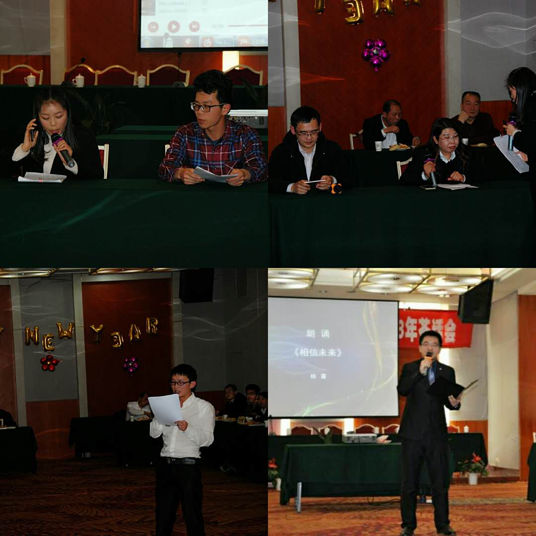 下午公司舉行了聯(lián)歡會,不僅有余音繞梁的女聲獨唱、高亢嘹亮的男生獨唱,而且還有引人入勝的情景劇、感人至深的朗誦等,年會過程中還穿插了有趣的團隊游戲,大家用心投入的表演無不展現(xiàn)著治水人創(chuàng)新、務實、自信的風采以及西安水建員工的綜合素養(yǎng)。聯(lián)歡會不僅給大家?guī)砹藲g聲笑語,同時也讓同事之間彼此的心更加貼近。公司領導與員工親情互動,歌聲、掌聲、歡呼聲在會場上此起彼伏,整場聯(lián)歡會高潮迭起,展現(xiàn)出西安水建集團這個大家庭的歡樂和諧。