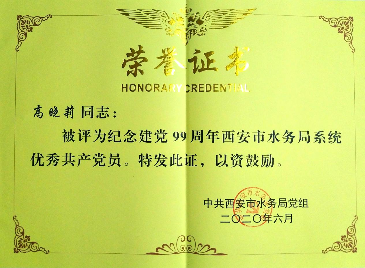 我單位張俊琪同志和高曉莉同志被市水務(wù)局黨組評(píng)為優(yōu)秀共產(chǎn)黨員。